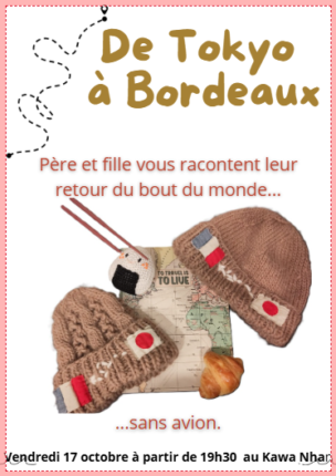 Lucie et Vincent vous accueilleront et vous raconteront leur voyage du Japon à la France sans avion. Quelle aventure ! Retrospective, projection, vidéos, dégustations. Entrée libre. Adhésion nécessaire