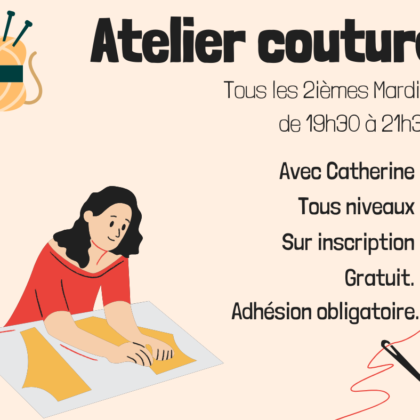 Atelier couture – le 2ème mardi du mois de 19h30 à 21h30
