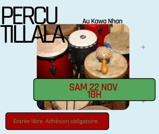 Apéro concert avec Percu Tillala- Samedi 22 Novembre à 18h