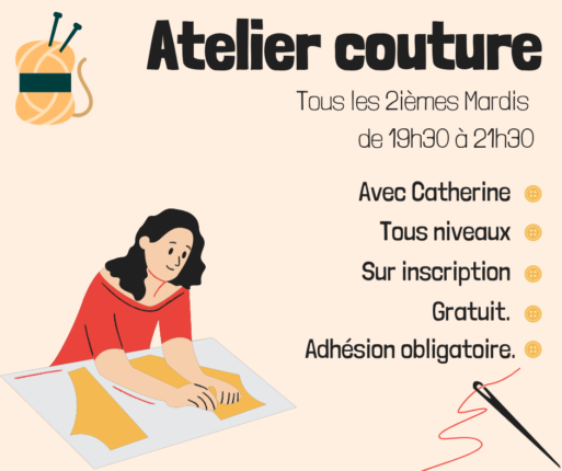 Atelier couture – le 2ème mardi du mois de 19h30 à 21h30