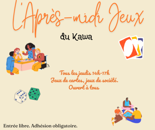Amateur de jeux de cartes mais aussi de jeux de société, le Kawa est fait pour toi ! Toute une équipe t’accueillera pour des parties de jeux endiablées. Et tes jeux sont les bienvenus. Entrée libre. Sans inscription. Tu viens et repars quand tu veux. Adhésion 15€ pour l’année civile ou 1€ par passage.